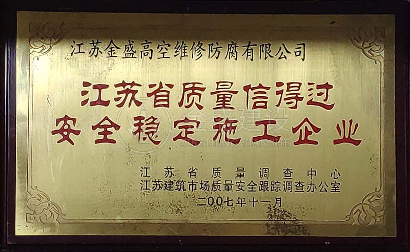 • 2007年江蘇省質量信得過安全穩定施工企業